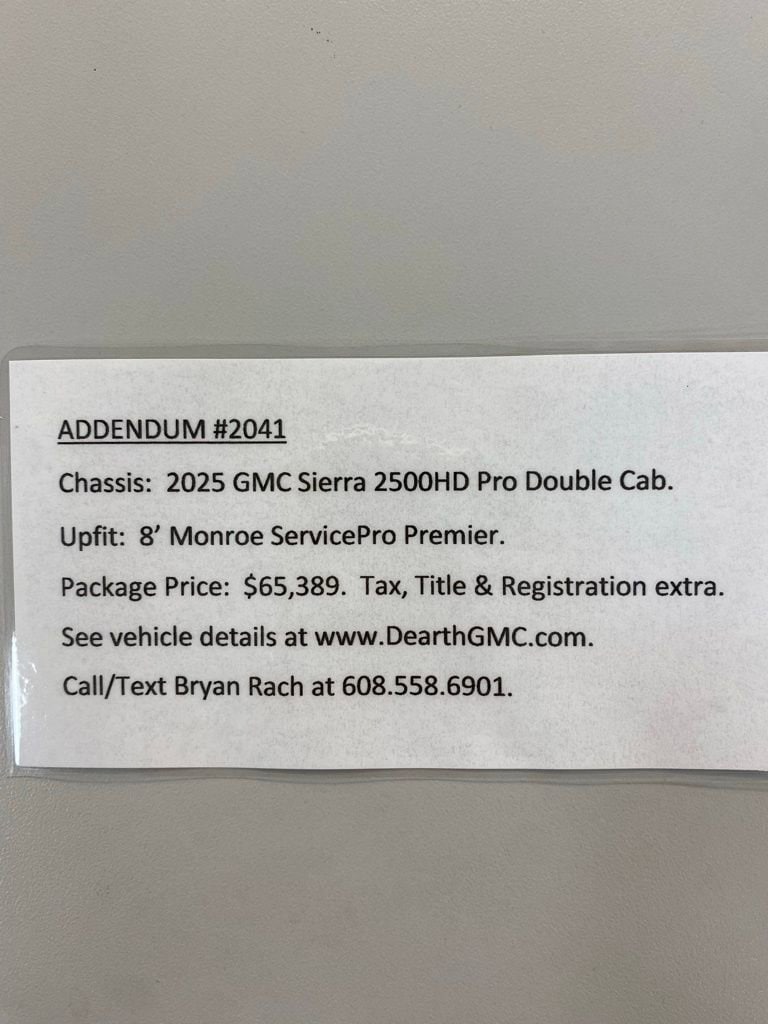 Summit White 2025 GMC Sierra 2500HD Pro 4WD 10-Speed Automatic 6.6L V8 10-Speed Automatic, 4WD, Jet Black Vinyl.